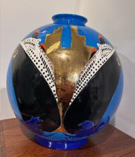 Vase de Longwy HOMMAGE à KLIMT, format boule coloniale 38 cm. de haut.