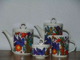 Hauteur cafetière 21 cm, pot à lait 15 cm., tasses 6 cm.